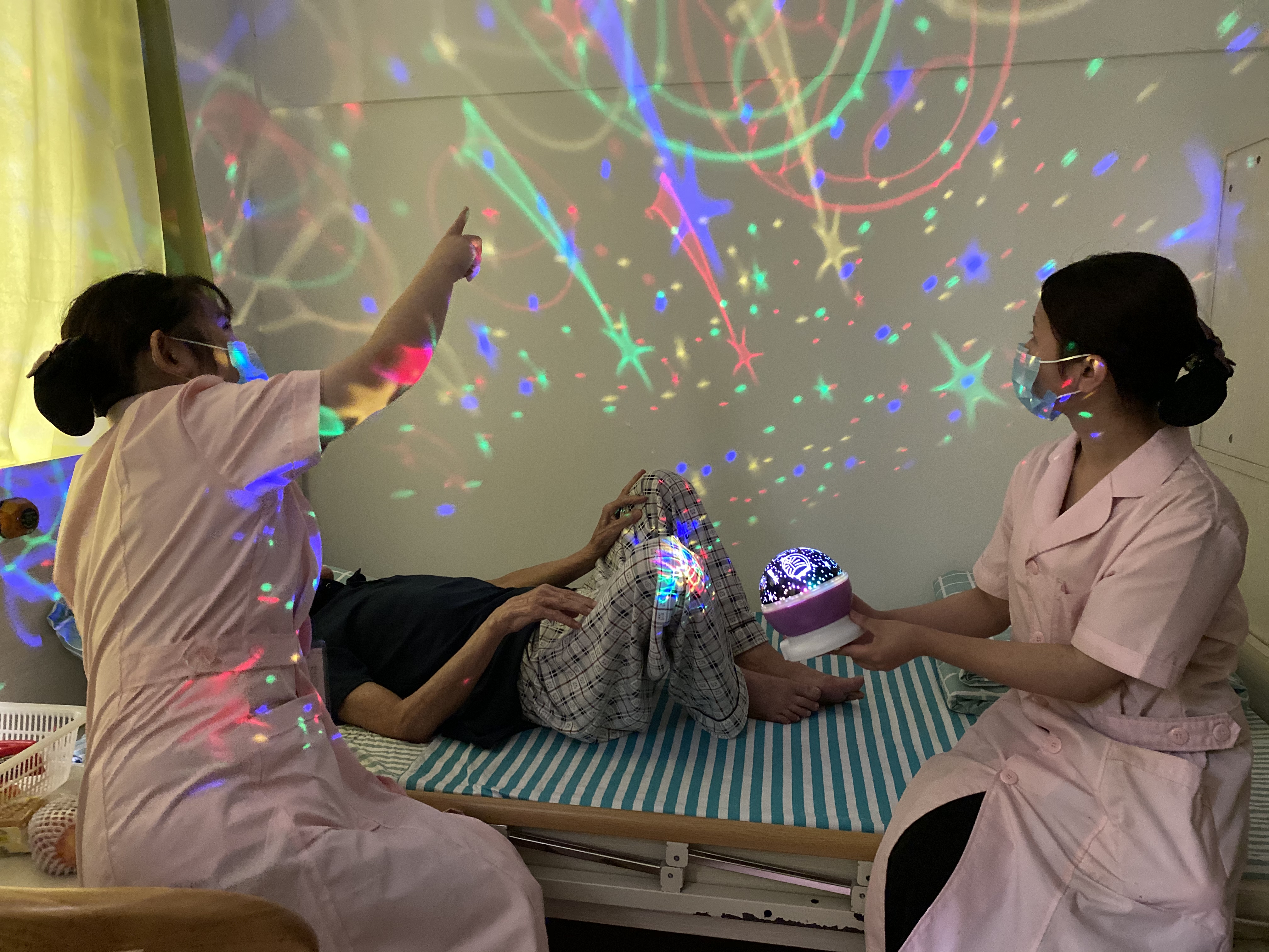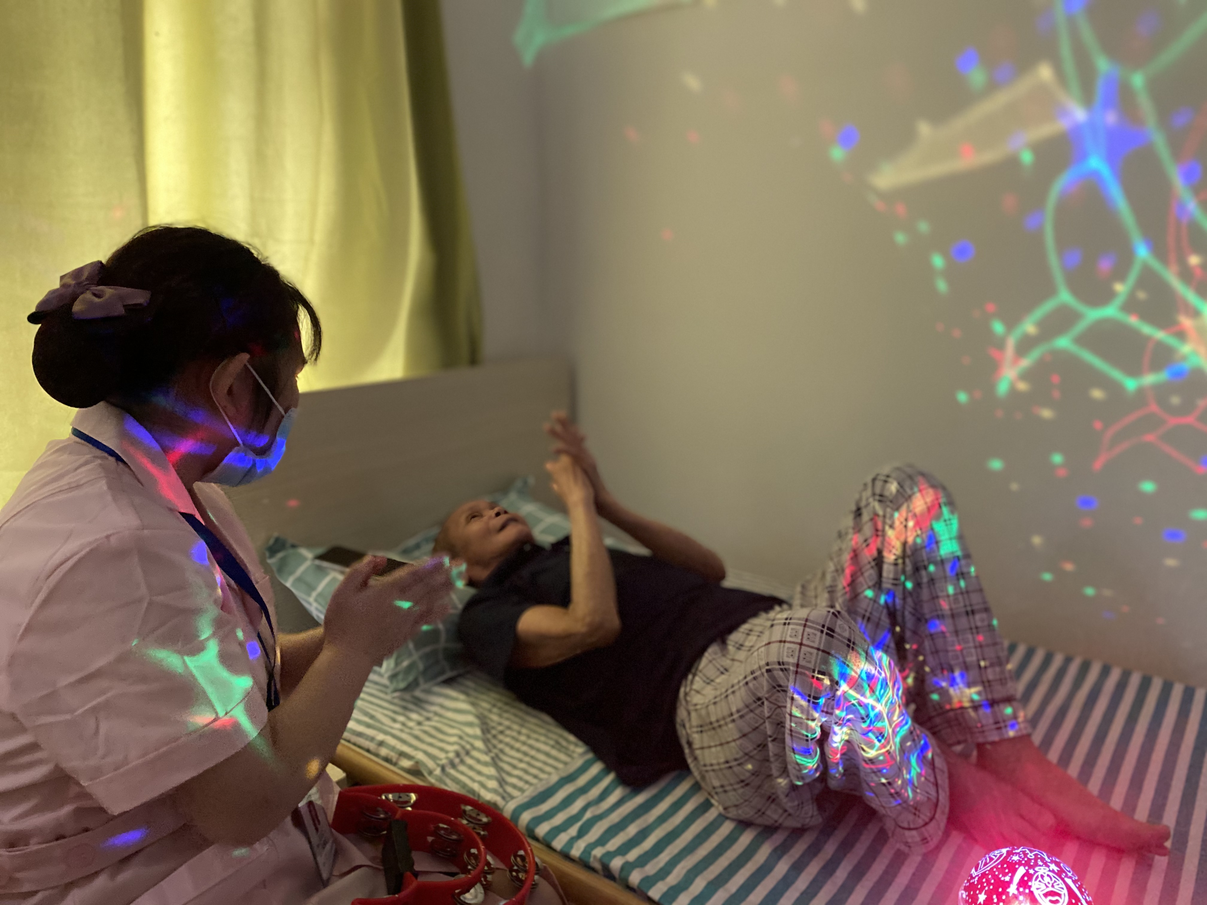 广州市昊琛养老院护理员为长辈做手指操和音乐治疗在这里,哪怕没有安排活动,长辈们也不会孤单。相比活跃型老人,养老院对于失能失智长辈的护理更注重情绪的安抚和调节。