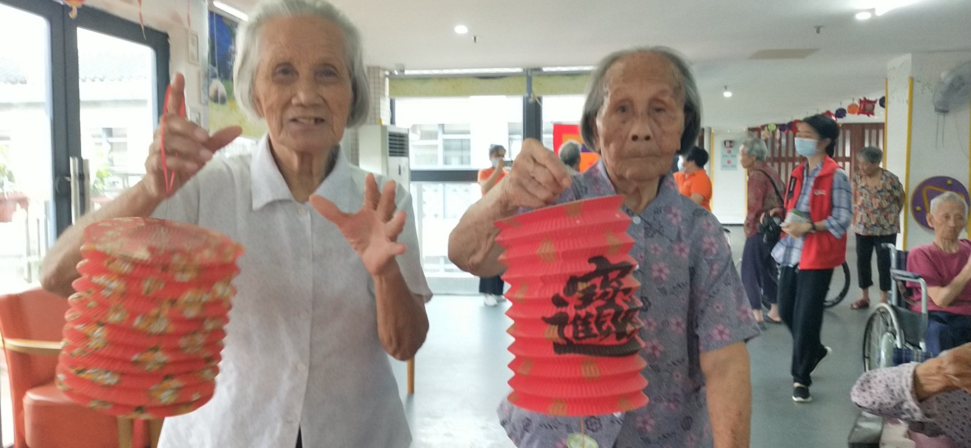 对于因身体原因不能下楼的长辈,工作人员则将灯笼送到长辈床边,为长辈拍摄照片,让长辈也能感受到浓厚的过节氛围。