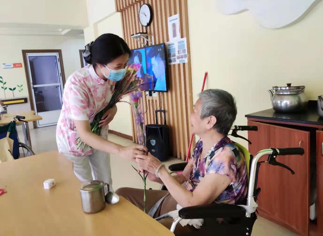 也就是从换日历开始,林婆婆慢慢成了院里的“爱心大使”,每天都会力所能及地去帮助其他长辈,帮助工作人员。院里还颁发心慈养老院爱心大使的绶带给她,给予她极大的成就感和参与感。
