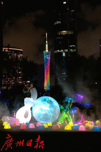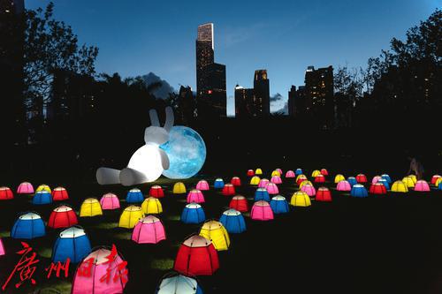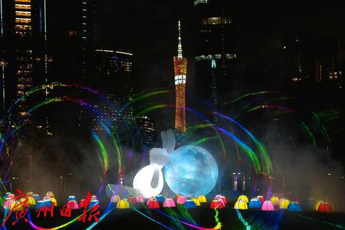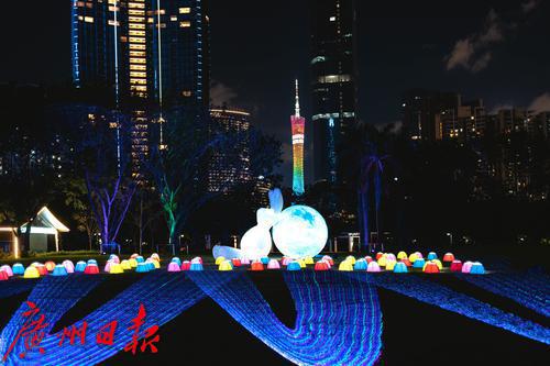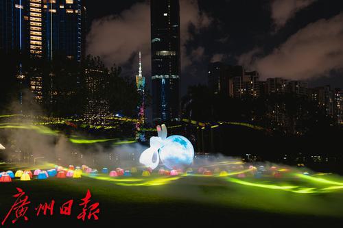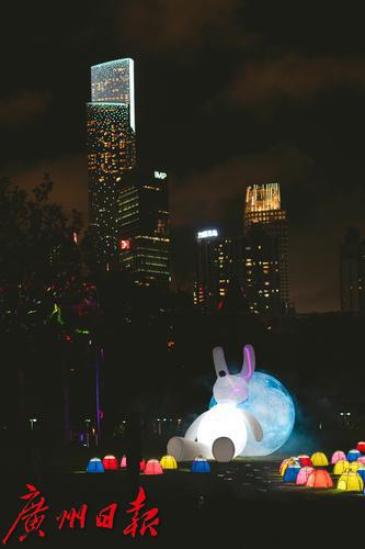 在这个中秋之夜,珠江公园兴盛门大草坪上可以看到一场美轮美奂的灯光秀,灯光秀主题为“逐梦·光·征程”。在3万平方米的开放式大草坪上,玉兔背靠在圆月之上,近百个新颖的应节帐篷灯笼环绕在玉兔灯组中,在广州塔的映衬之下,通过多媒体激光投影、彩光艺术灯、发光彩帐篷、电脑灯、大型简约艺术灯组等道具,打造了一场兼具艺术创意和浪漫气氛的立体彩光秀,吸引了大批市民游客前来打卡拍照。灯光秀展出时间为9月19日至21日、10月1日至7日晚19点30分至21点30分,各位网友不妨在假期时去看看灯光秀,浪漫一番。
