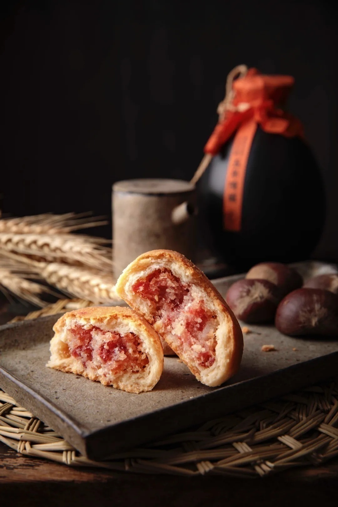 云腿月饼选用宣威火腿最好的部分,肥瘦相间的火腿,配以蜂蜜和猪油。一口咬下,饼皮扑簌簌间,先抵达舌尖的是蜂蜜的甜味,细细咀嚼下,火腿的咸香就迸发出来了,油润但又不腻。