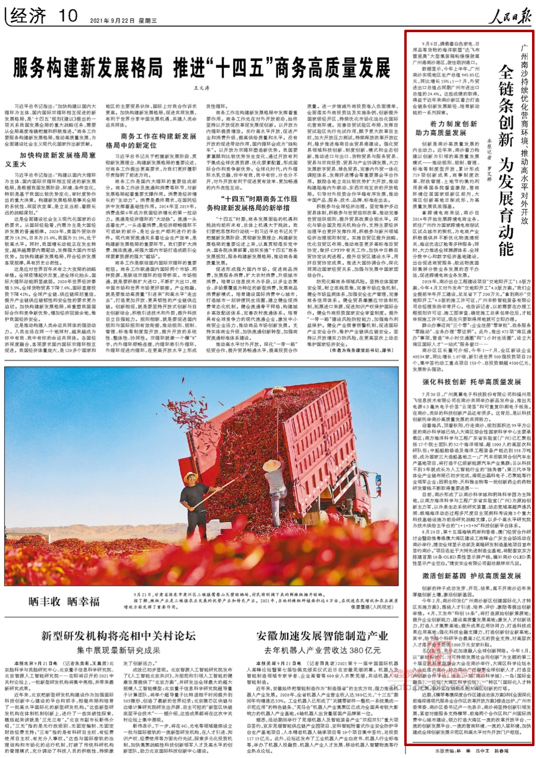 数据显示,今年上半年,广州南沙实现地区生产总值945.85亿元,同比增长15%;1—7月,外贸进出口总值占同期广州市进出口总值的24.4%。这些成绩的取得,得益于近年来南沙新区着力打造全链条创新发展路径、培育新动能的一系列探索。