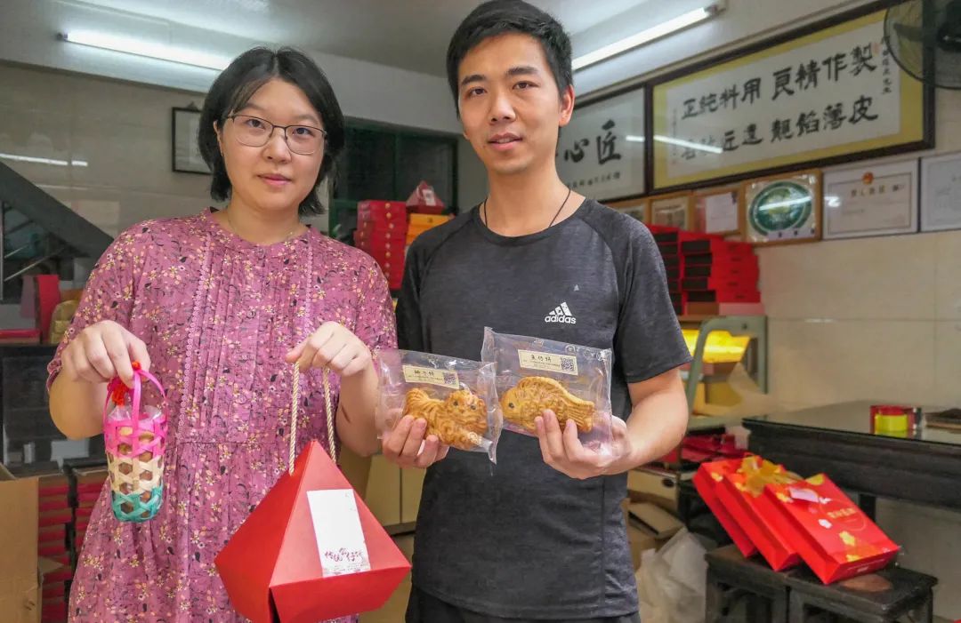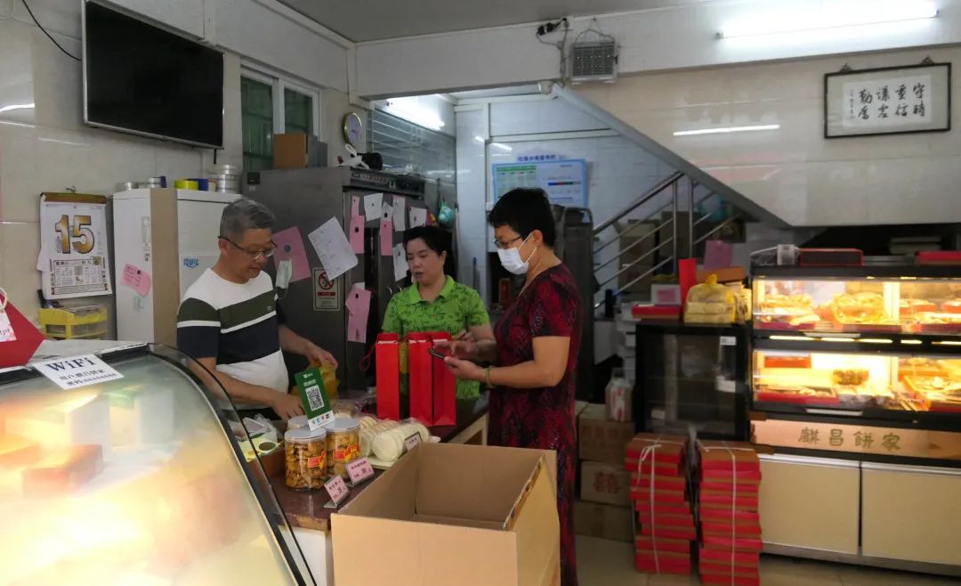 除了街坊邻里和其他老顾客的生意,麒昌饼家还接收了许多线上订单,这些订单的来源多数是熟客介绍而来,比如有的街坊会将公仔饼、月饼带到省外送礼,而他们的朋友则被公仔饼和月饼的外观、美味所吸引,便主动添加店铺联系方式,进行线上预订购买。“我们在中秋期间的下班时间都要比平时推迟两个多小时,每天晚上还要包装好多快递寄出去”,麒昌饼家第三代继承人阿静说。