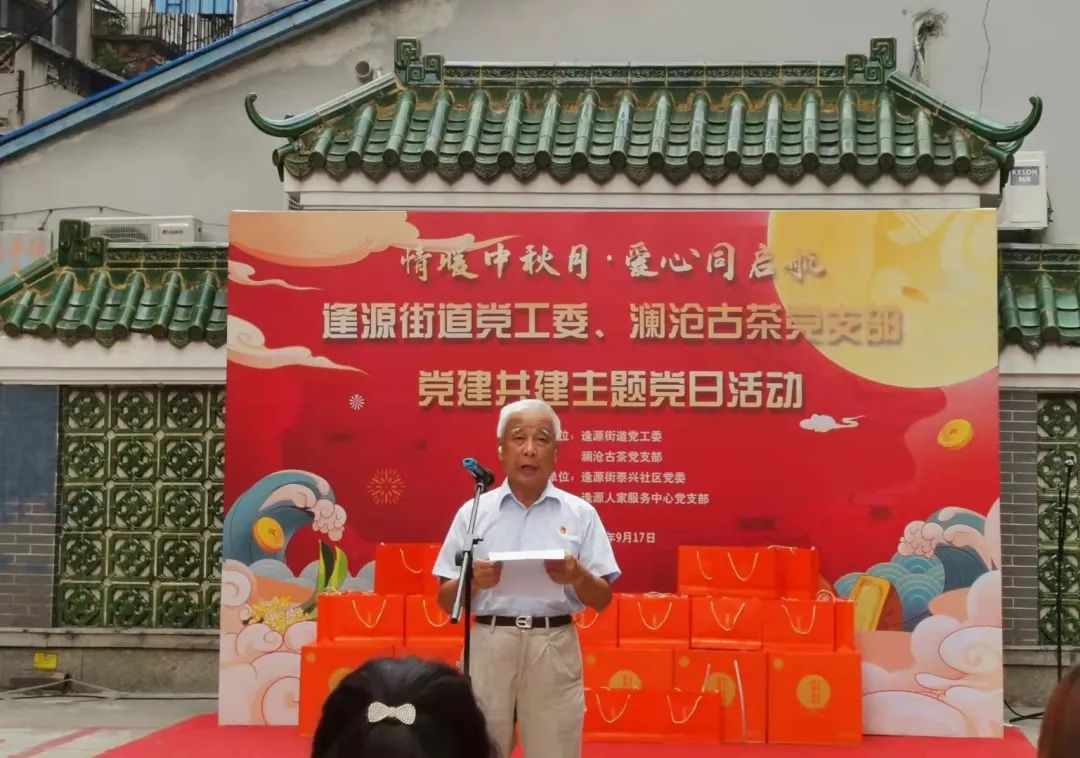 为让辖区老党员、困难党员度过一个幸福、快乐、祥和的中秋节,荔湾区委组织部、逢源街道党工委、澜沧古茶党支部在活动中向10位老党员和困难党员代表赠送爱心月饼,并送上了诚挚的节日祝福。