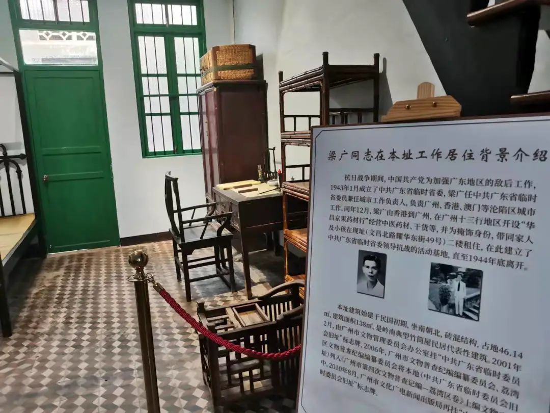 随后,党员群众一行来到位于耀华东街49号的中共广东省临时委员会旧址进行参观。据了解,该址是1943年中共广东省临时委员会委员梁广在广州从事地下工作及居住的秘密场所,于2021年6月底修缮完工。
