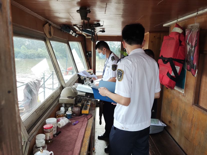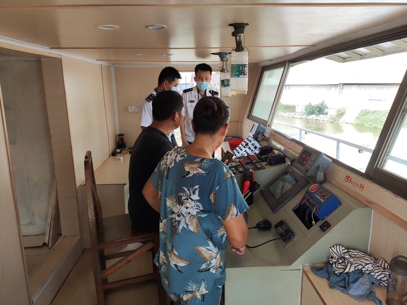 近日,广州番禺海事处结合日常巡航,加强对辖区重点船舶的安全检查,依法滞留一艘低标准船舶,营造良好的辖区水上交通安全环境。