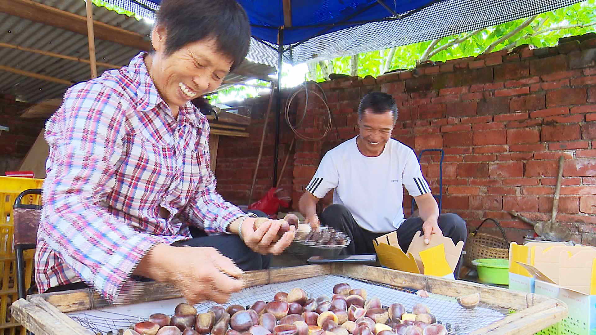 勤劳肯干的夫妻俩,在这片板栗园里耕耘了16个春秋,奋斗出自己的美好生活。如今,夫妻俩早已步入花甲之年,依然钟情着板栗特有的香甜,执迷着板栗这份“香甜事业”,因为园里的2000多棵板栗树,见证了他们告别贫困,拥抱小康的奋斗历程。