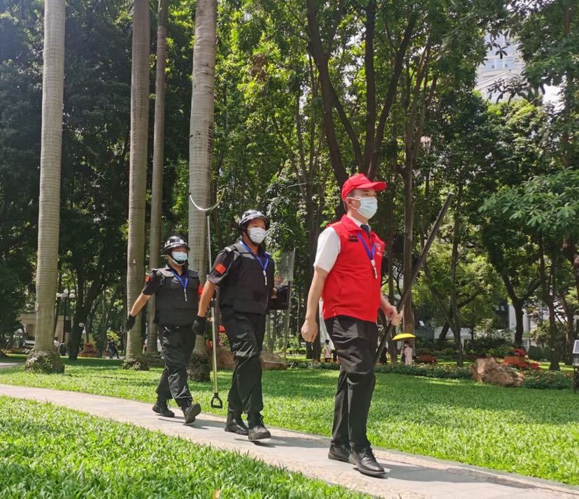据介绍,在正佳广场已设立了五组最小应急单元,每三个人一组,从早上10点到晚上10点进行巡逻,守护市民群众安全。
