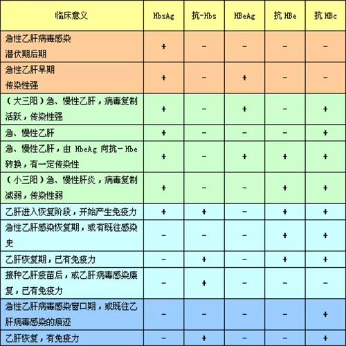 以上5种血清标志物俗称“两对半”,HBV抗原和抗体的血清学标志与临床关系较为复杂,必须对几项指标同时分析,方能做出正确的诊断,结果分析见“乙肝两对半对照表”。
