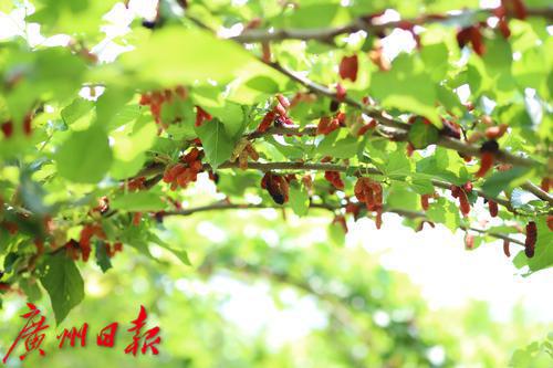 桑舍幽幽掩碧丛,清风小径露芳容。眼下正是桑葚成熟期,良口镇良平村一桑园内30亩桑葚硕果迎枝,酸甜可口,抢“鲜”上市了。