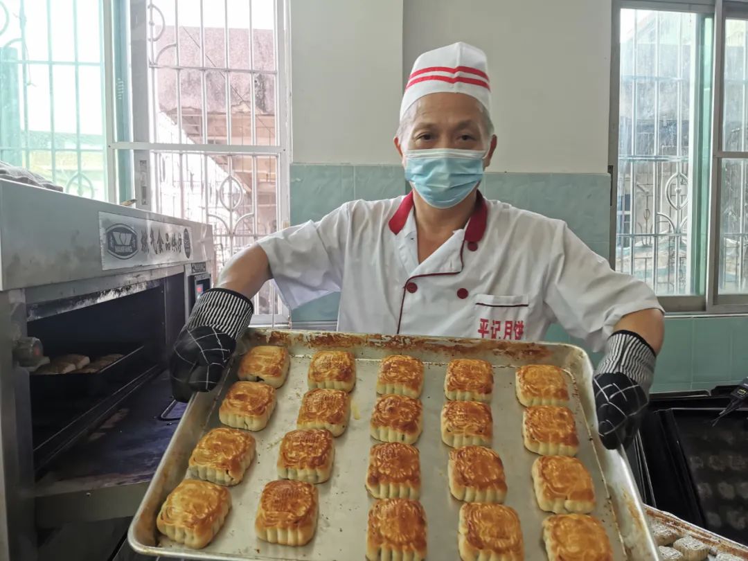 一块百年牌匾背后是一代手艺人的传承情,也是一辈人对于中秋节的舌尖记忆。至今仍坚守手工月饼的平记传人曾镜平说:“1980年开始跟我爸爸学做月饼,到现在已经四十多年了。我认为还是要把手工月饼继续做下去,这项技艺是祖传的,不能丢失。”老师傅曾镜平作为“总管”,不仅需要关注食材原料的质量,更要监管月饼的印模、烘烤等关键步骤,亲自上阵把关,做到皮薄馅厚,糯软甘香,才能赢得顾客的口碑。