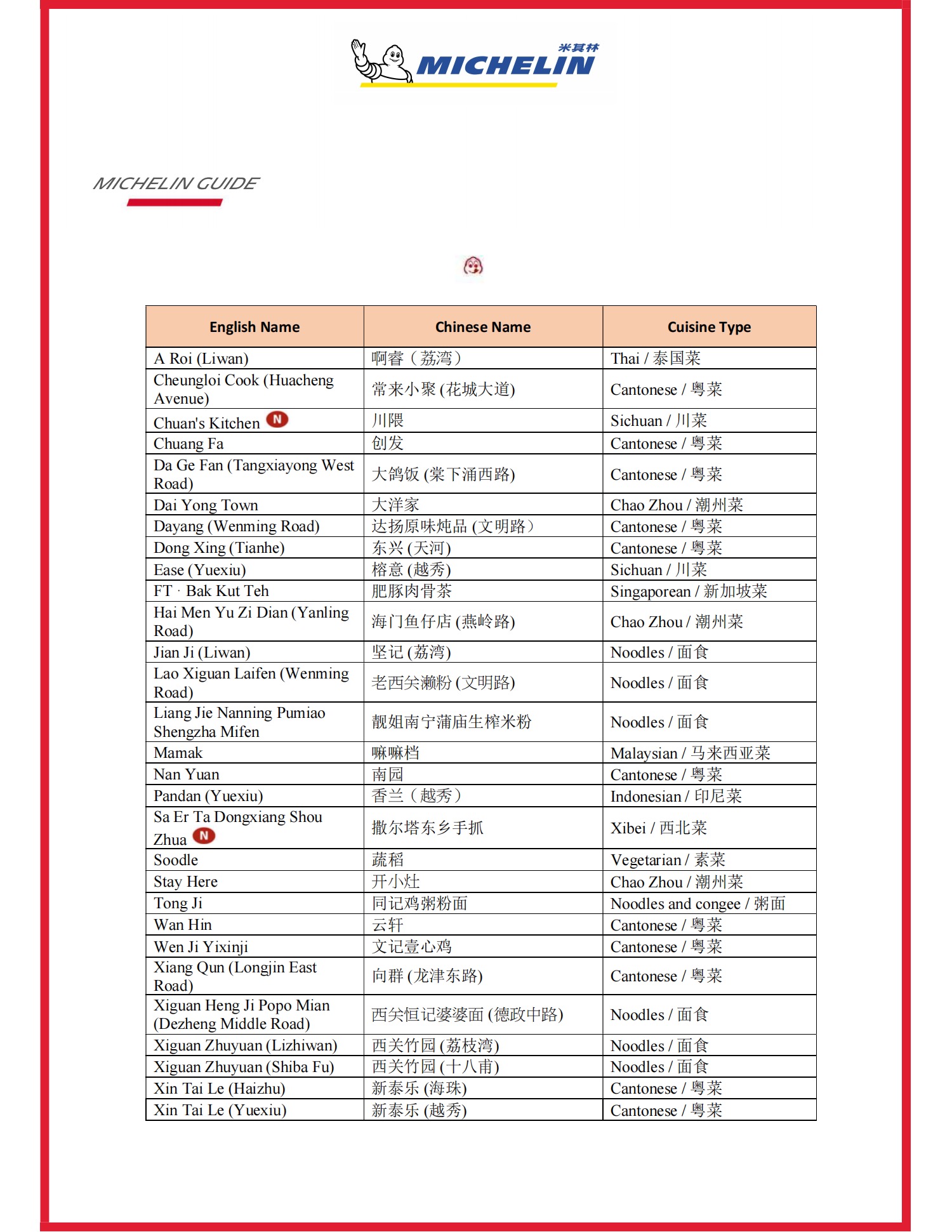 必比登榜单旨在推荐美味且经济实惠餐厅。今年广州“必比登推介”榜单中的餐厅人均消费一般在300元人民币或以下(三道菜式但不包括饮料)。