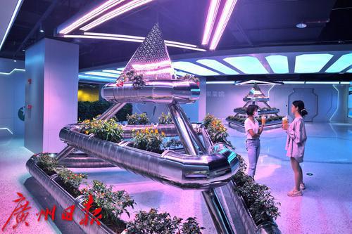 2021年9月22日,花城农园负二层一个以太空惊奇场景设置的大型现代农业科普空间,分别设置了沉浸式太空栽培仓等科普场景,展示现代农业技术下蔬果生长管理的新方式。
