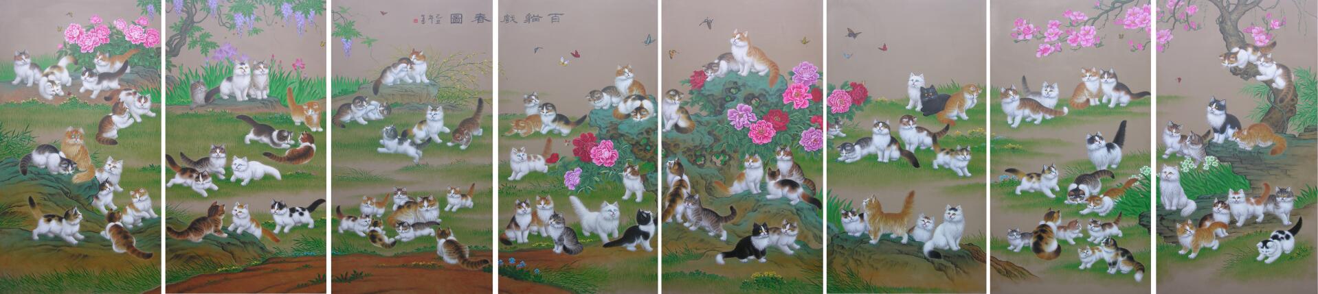 (第三届中国工艺美术大师薛生金先生的平遥推光漆器《百猫戏春图》大屏风)亮点一:
