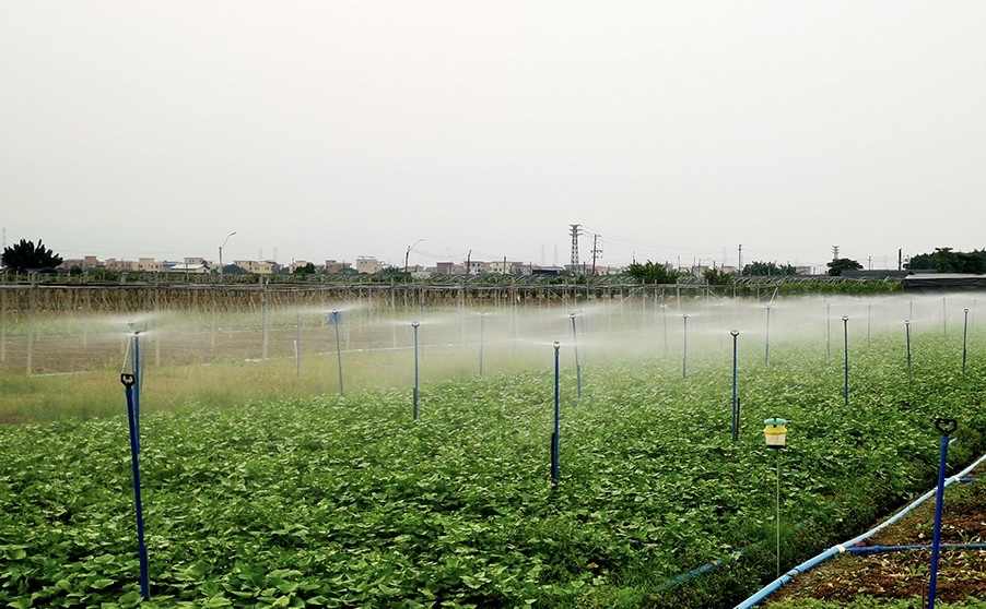 9月17日,记者来到石碁镇前锋村的禺锋蔬菜种植农民专业合作社蔬菜基地,眼前稻田里禾苗长势茂盛。前不久,这块地是种植夏季豆瓜菜的,采收完毕后,试种了15亩的丝苗稻。除了这块稻田,其余的地块都种植蔬菜,有番薯藤、绿线叶、菜心、紫贝菜、生菜,有的可以上市了,有的刚长出幼苗,还有的地块等待播种。菜地里安装了自动喷灌设备,工作人员按下开关,菜地里就喷出了水雾。在蔬菜基地的工作棚,大家将不同地块采摘的蔬菜送来过秤,过秤之后再运往清河综合市场的配送中心,销往供应区内农贸市场、平价商店、酒店等。