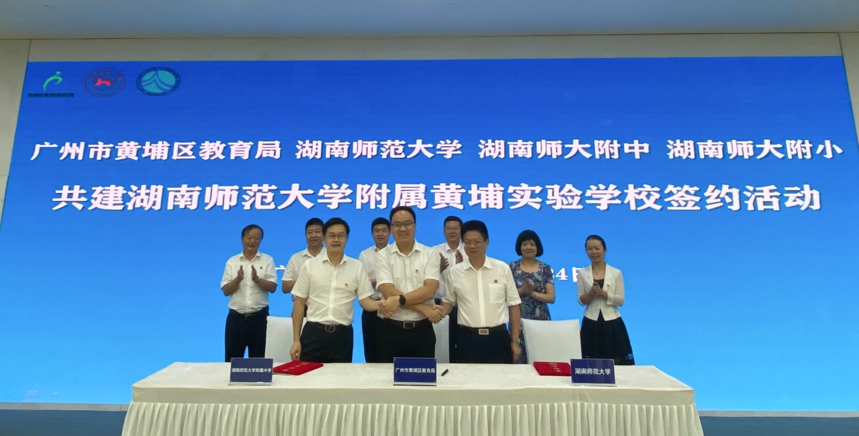 9月24日,广州市黄埔区与湖南师范大学(含师大附小,下同)、湖南师范大学附属中学在广州科学城会议中心签订合作办学协议。据介绍,双方将共同打造质量领先、特色鲜明、具有创新性和示范性的一流中小学——“湖南师范大学附属黄埔实验学校(拟命名)”。该校计划于2022年部分开学。