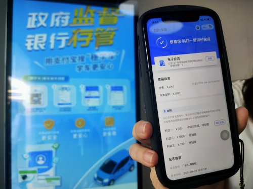 在广州公交集团培训中心有限公司新洲训练场,工作人员给记者演示了通过“穗学车”支付宝小程序报名的过程:在支付宝搜索“穗学车”小程序并登陆—在小程序中查询并选择驾校,按照小程序提示进行报名操作—报名驾校与学员进行联系,双方对培训合同条款进行协商取得一致后,驾校向学员推送合同—学员在“穗学车”网签电子培训合同—进入付费页面进行线上缴费—部分学费将被冻结并接受网商银行存管。据介绍,该笔学费会依据学员驾考进程并经过学员本人的同意后,分科目划拨给驾校,若学员有异议,可随时暂停划拨流程,与驾校协商一致后,再启动划拨流程。