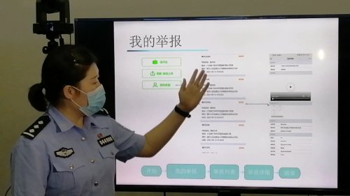 广州市公安局交警支队违法处理中心李警官介绍违法举报操作指引。信息时报记者 陈绵钦 摄