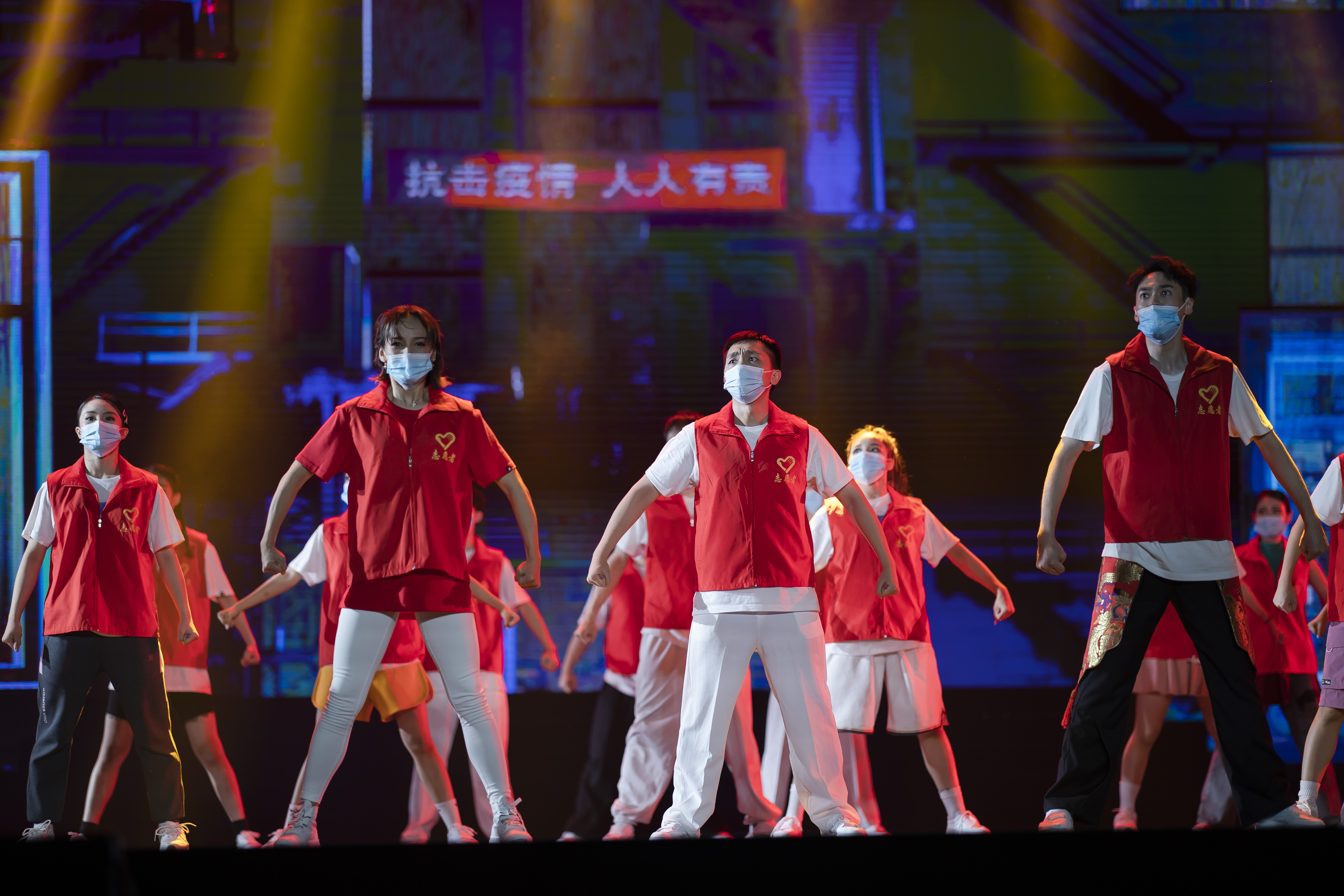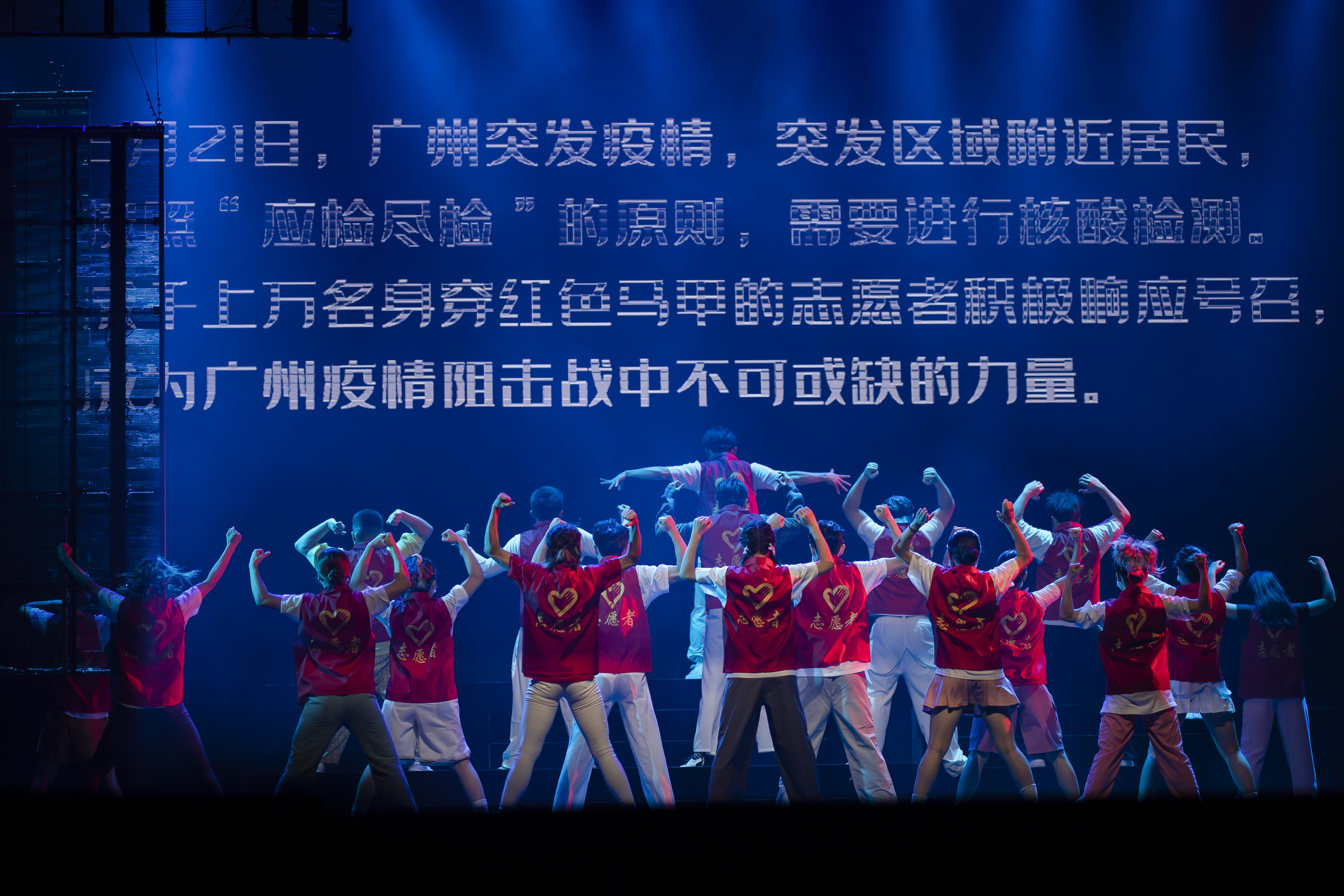周任勋表示,剧中专门设计了一段描述抗疫志愿服务的群舞舞段,其中有一个“红色胶凳”的灵感,就源于上次疫情期间的一张“刷屏”新闻照片:突如其来的大雨中,一位医务人员举着把“红色胶凳”当雨伞,坚守自己的岗位。“这张照片感动了无数人,我把红色胶凳放到我们的作品里,记录温暖时刻。”周任勋说道,“《我们的生活》作品取材于此,正是想要突出广州青年的积极向上和勇于担当。”