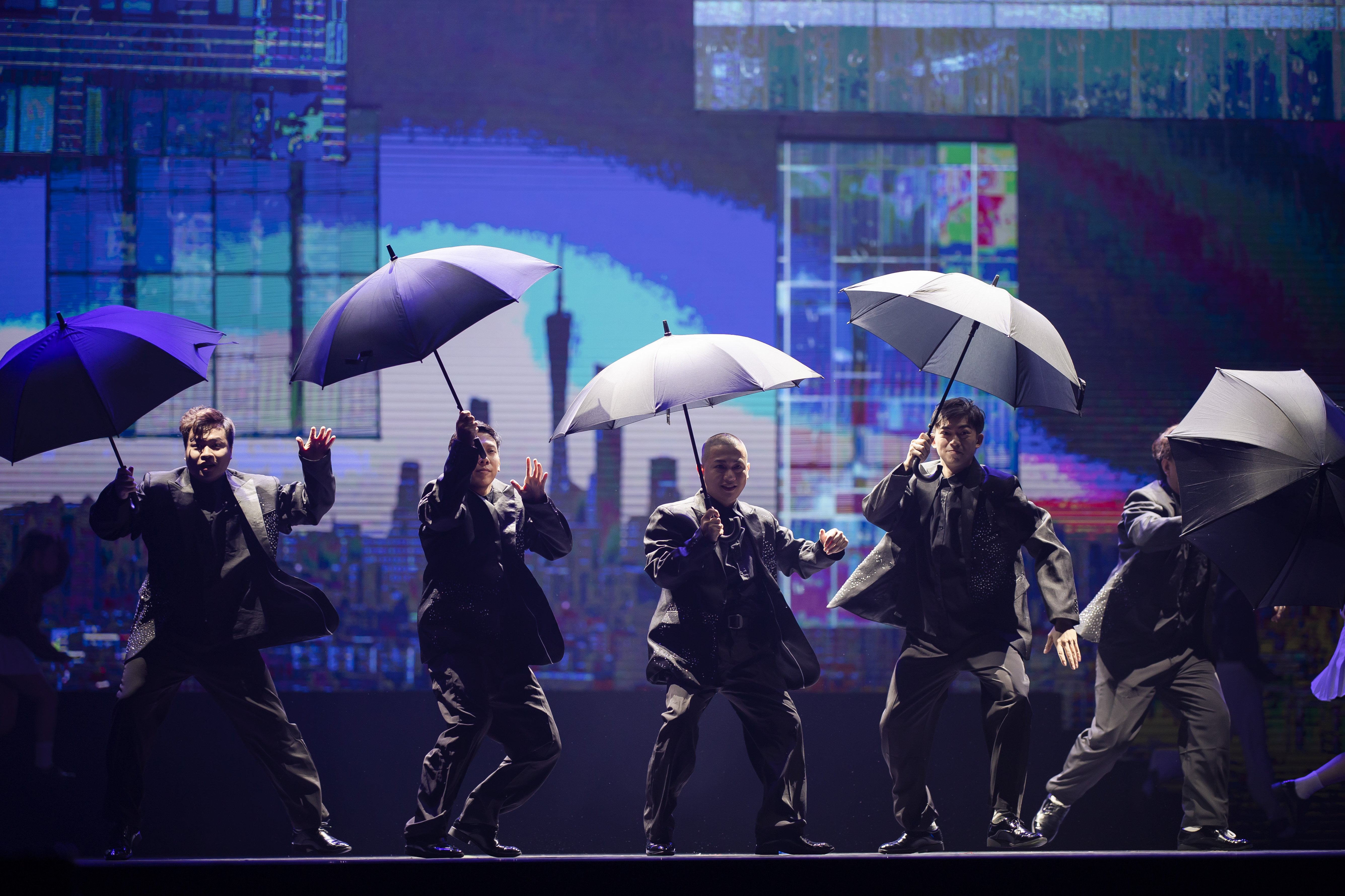 此外,整场演出融合了不同舞种,同时融入粤剧、咏春拳、鸡公榄、英歌舞等本土元素,为观众带来一场视听盛宴。