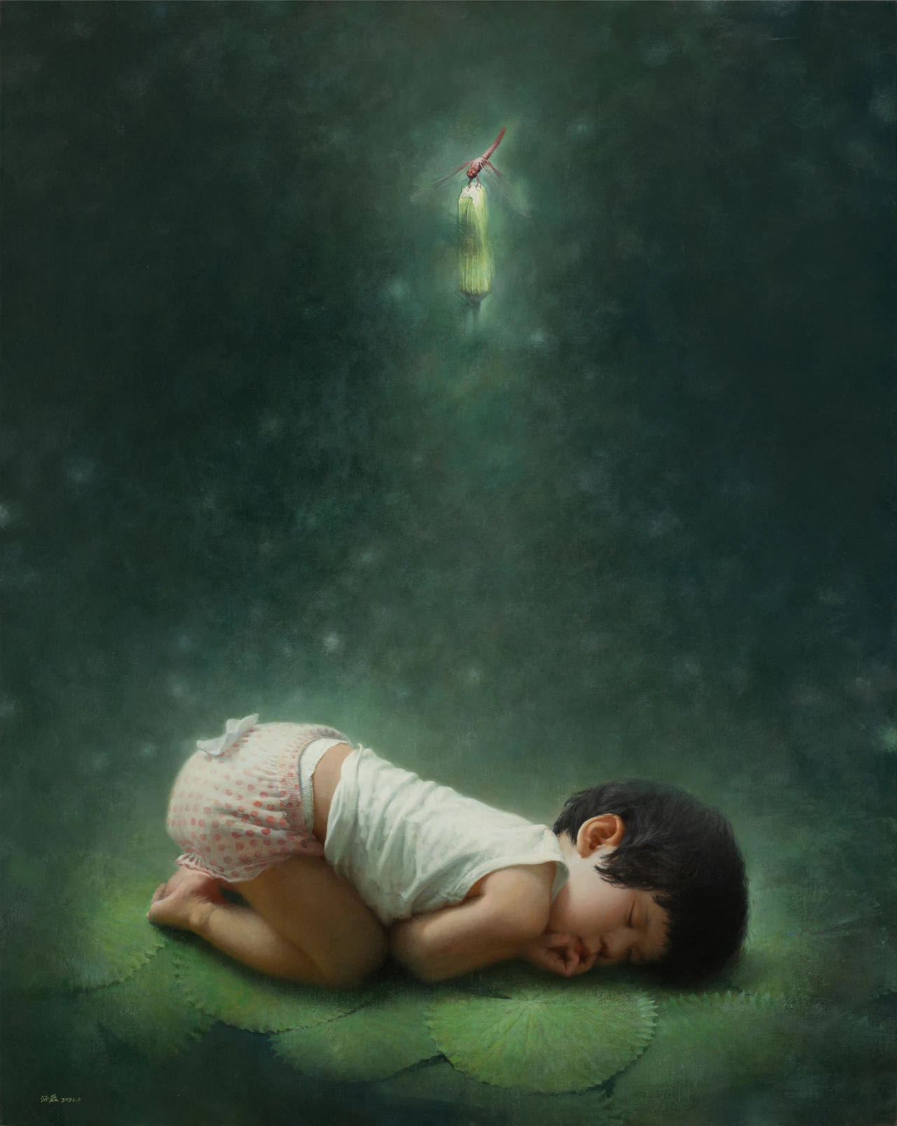 《天真的知音》《逐》《谧》《紫韵》等一系列作品,以单纯的主题形象勾起童年欢快无忧的回忆,艺术家以淳朴无华的表现手法抚慰焦躁的情绪,平静内心,通过绘画,将世间真善美绘于纸上,让观者感受天真,读懂艺术,让生活成熟而不失天真!