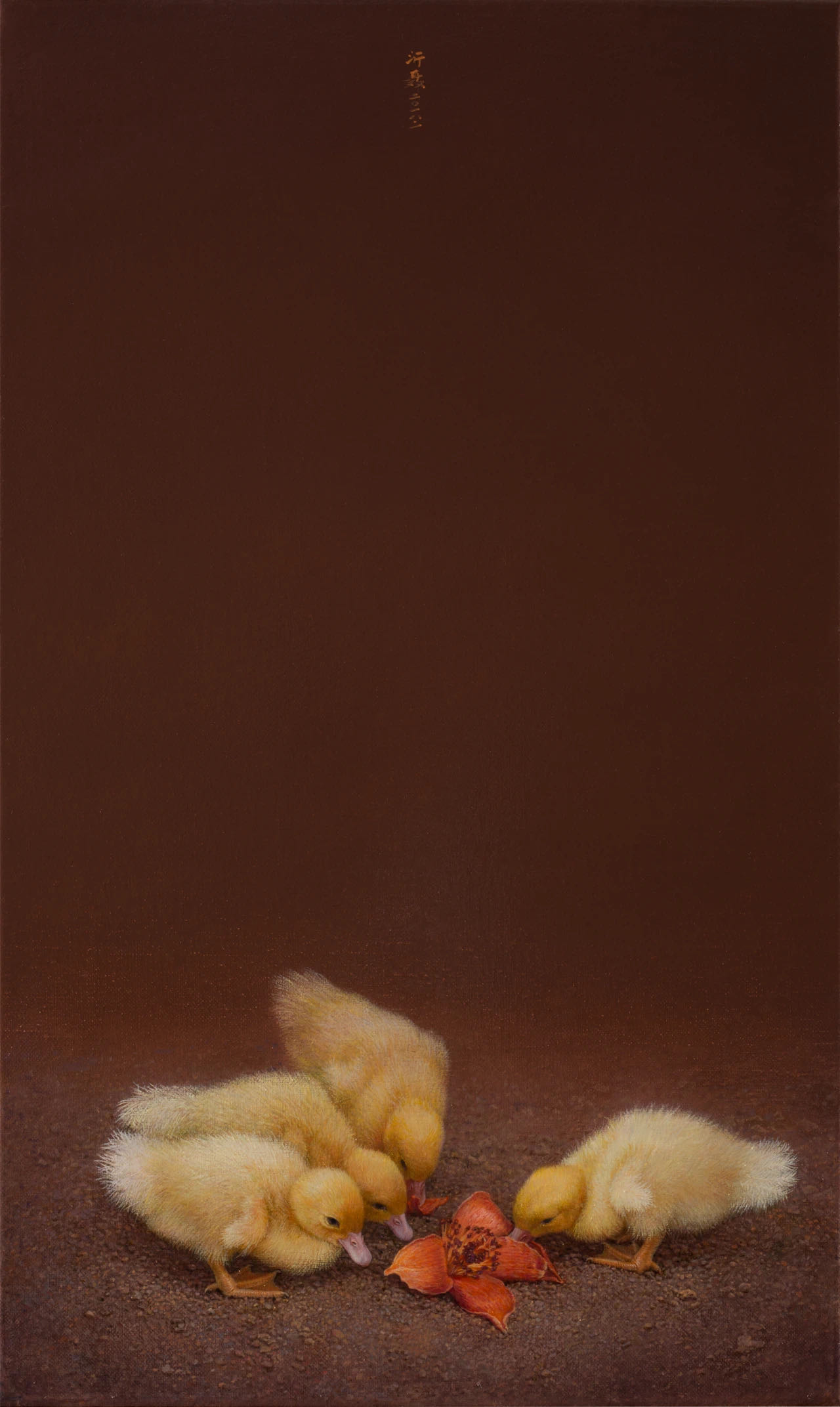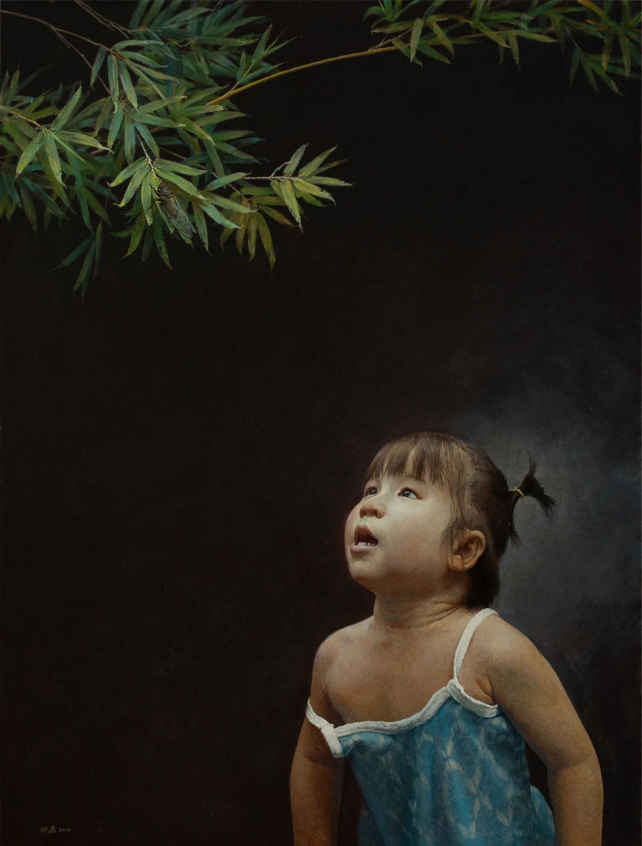 “琢刻天真”一词取自苏轼的诗句“琢刻天真半欲空”,是指通过琢磨篆刻盈润的美玉,使之玲珑剔透,伴随音符妙不可言,而纵观曾沂聂的艺术作品,亦有此种妙趣。艺术家通过特别的画面语言,自然的绘制手段,彰显油画特质,完成古典写实。