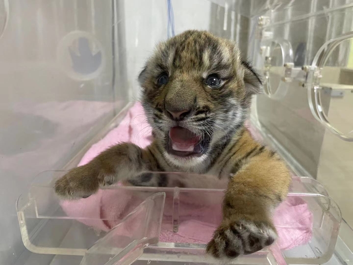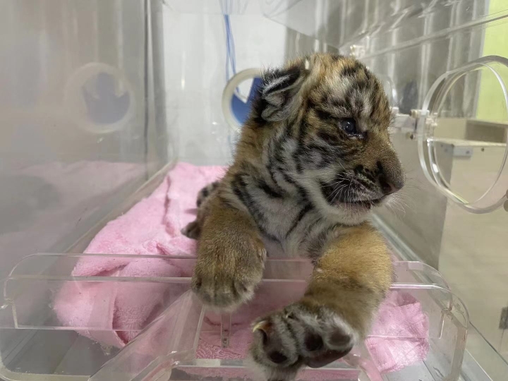 目前,虎宝宝已经在保育箱里待了20多天,雷胜桥介绍,随着虎宝宝的体重逐渐增加,保育箱的空间已经不够让虎宝宝活动,接下来,他们将会把虎宝宝转移到空间更大的活动箱。