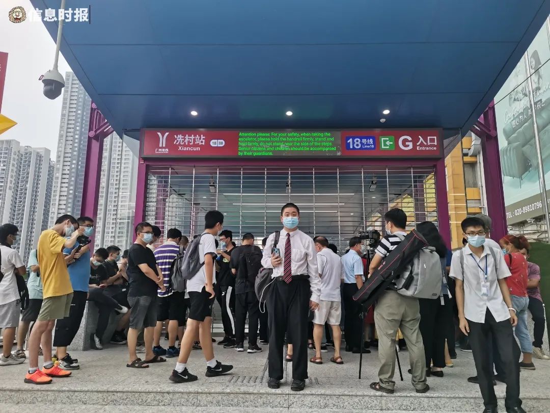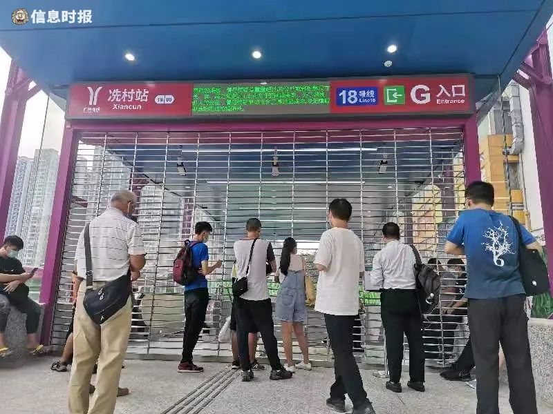 9月28日中午12时30分左右,记者来到十八号线天河冼村站时,该站G出入口已有20余人在等待,不少人忙着拍照,还有现场直播。工作人员表示,入口闸门计划在13:45开放。