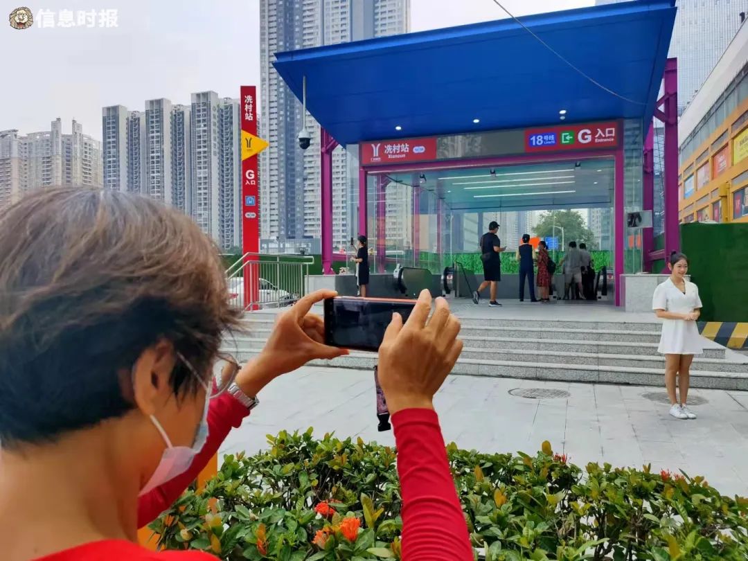 陈阿姨从海珠区过来,她告诉记者,她和一帮老友相约一起体验十八号线,"我们从不同的站点出发,约好在万顷沙汇合,然后出站,去周围找美食,今天晚饭后再回来。"