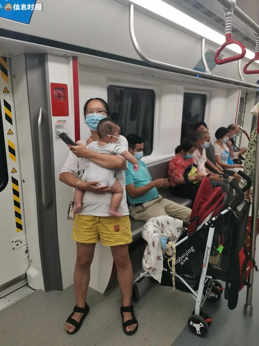 王女士带着四个月大的娃来体验,她评价说,“确实又快又稳,舒适"。王女士家住市区,老公家在万顷沙,“以前我们都是开车回去,要一个多钟,今天我从磨碟沙上的十八号线,我一个人带娃,也能坐地铁回去,真方便。”