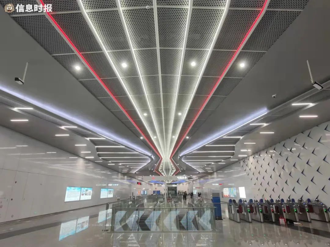 番禺广场站厅,开阔大气,中庭矗立的两个大电子屏十分显眼,屏幕上图案变幻,有趣的是,屏幕的背面其实“暗藏”了无障碍电梯,成为一大亮点。据有关人士介绍,动态屏幕为LED矩阵屏,有多个模式、场景,画面可根据实际需要调整、变化,屏幕还可和站厅的灯光联动,整体和谐、统一。
