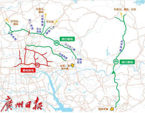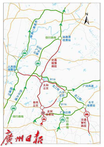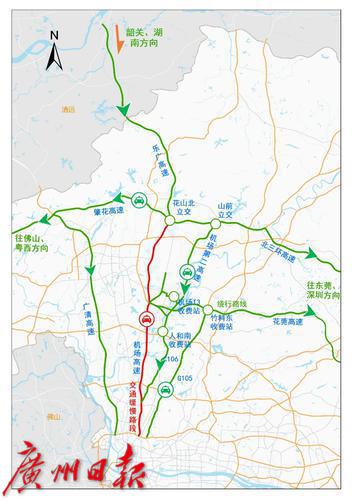 同时,北环高速沙贝服务区、京港澳高速瓦窑岗服务区、广河高速正果服务区、大广高速从化服务区、乐广高速花城服务区、北二环高速火村服务区以及北三环新安服务区等高速服务区,预计密集车辆在进入服务区排队时间较长,可能出现车流倒灌、影响高速主线的通行。