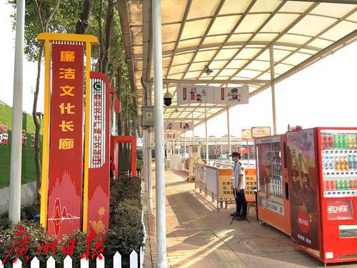 选址白云文化广场红色站台的廉洁主题文化长廊是在交通站场中心党委指导下,公交站场管理公司承办打造的廉洁文化长廊,红色元素强烈,党史学习氛围浓厚。升级打造的廉洁文化长廊,总长度近百米,共分为廉洁文化展示区、廉洁教育互动区、廉洁微景观区3个区域,是对公共交通窗口的优势的又一充分运用。