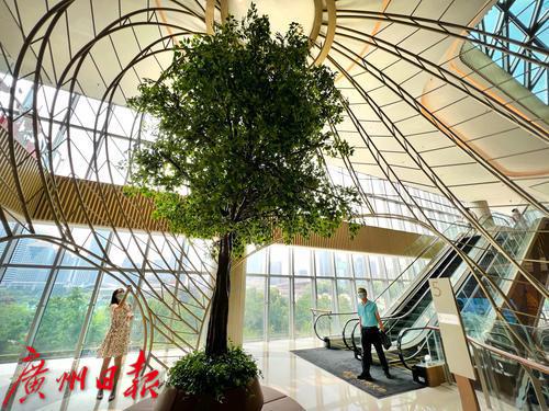 2021年9月29日,广州CBD中轴新地标广州环贸中心正式开业。环贸中心坐落于广州城市中轴CBD北端起点,与广州塔南北对望,总建设面积超过18万㎡,集超甲级商务办公、购物新中心环贸天地、雅诗阁服务公寓及越秀星廷公寓于一体。环贸中心的环贸天地作为天河北商圈时隔12年来全新亮相的购物中心,商场内横跨500米的长条形动线,规划了超200米的景观长廊,将原本属于室外的绿植引入室内,给顾客带来森林中购物的全新场景体验。近日,广州市天河区荣膺中国楼宇经济高质量发展标杆范例,广州环贸中心被列为中国楼宇经济新地标项目。
