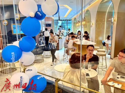 2021年9月29日,人们在LAVAZZA拉瓦萨广州首店内喝咖啡。