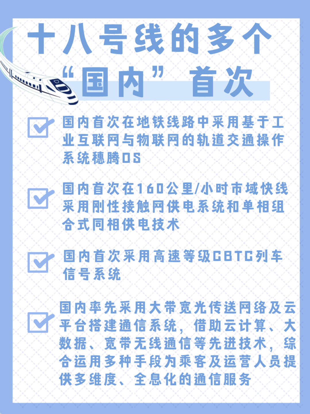 据介绍,与现有地铁“方头方脑”不同,十八号线是城际列车模样的“子弹头”,车辆采用160公里/小时市域D型车,8编组六动两拖。