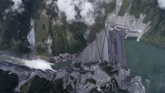 两河口水电站位于四川省甘孜藏族自治州雅江县境内,电站砾石土心墙堆石坝坝高295米,是建成发电的世界第二高土石坝。该电站核准投资总额664.57亿元,总装机300万千瓦,电站库容达108亿立方米,具备多年调节性能。电站于2014年10月开工,2015年11月截流并开始围堰填筑,2020年12月开始下闸蓄水,计划于2023年工程竣工。雅砻江两河口水电站大坝上游