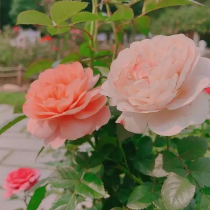 花园的玫瑰、绣球、鼠尾草等花儿
