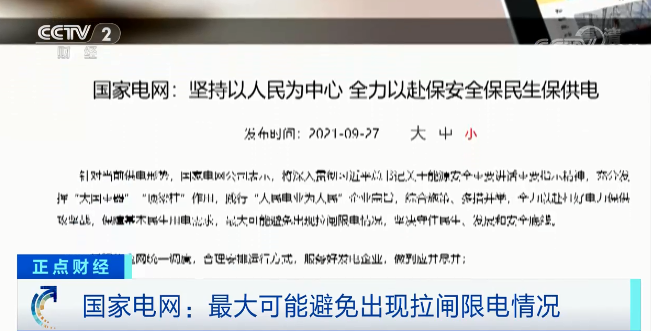 针对当前的供电形势,国家电网公司27日也给出最新回应,将全力以赴打好电力保供攻坚战,保障基本民生用电需求,最大可能避免出现拉闸限电情况。
