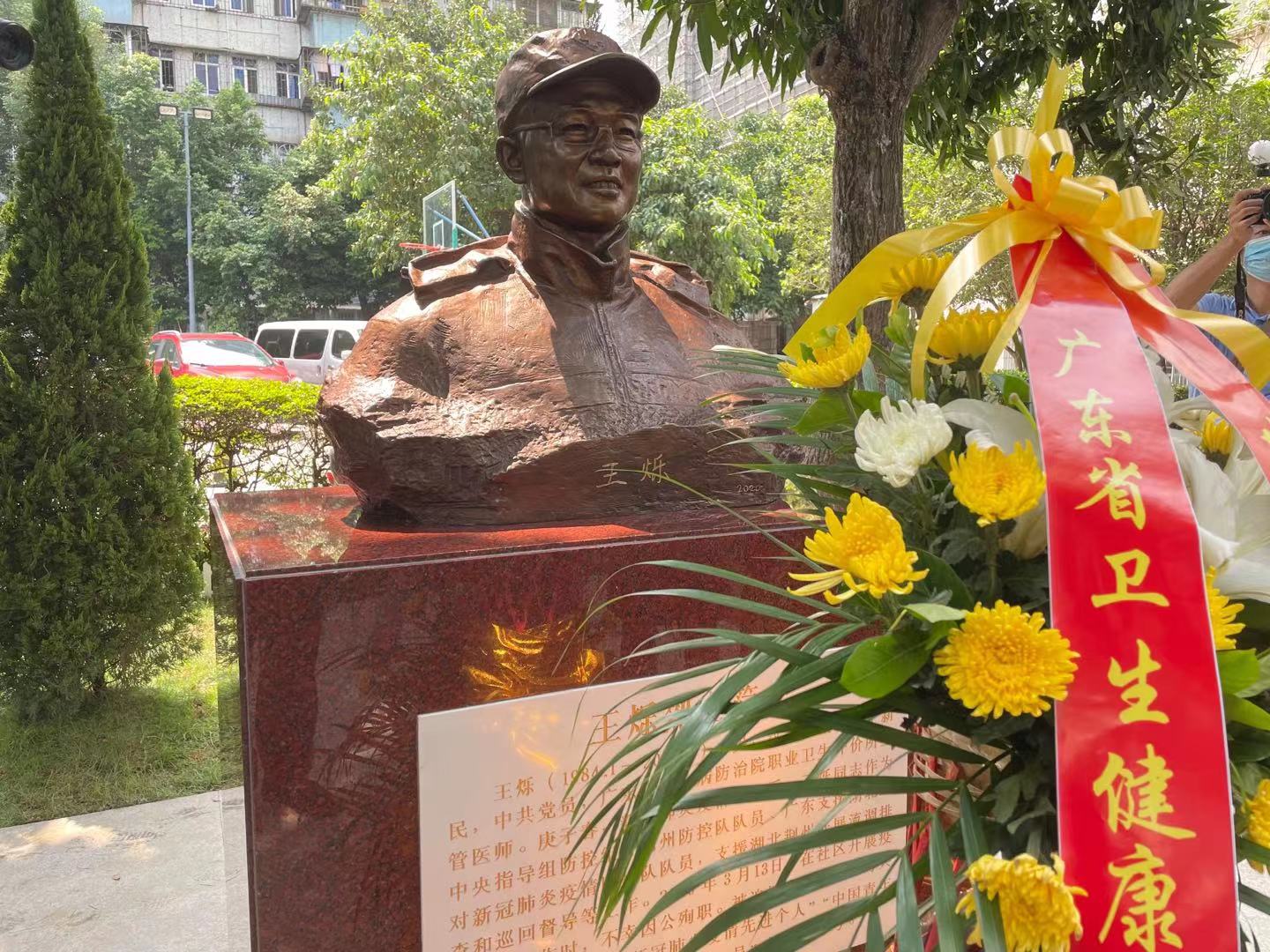 9月30日是第八个中国烈士纪念日。在这个特殊的日子里,2020年初支援湖北荆州抗击新冠疫情的广东医疗队员王烁被正式授予烈士称号。30日上午,在王烁生前工作单位广东省职业病防治院内,王烁铜像和王烁纪念园正式落成。王烁烈士家属,广东省卫健委、广东省职业病防治院的相关领导,王烁雕像制作者广州雕塑院院长许鸿飞等出席了落成仪式。