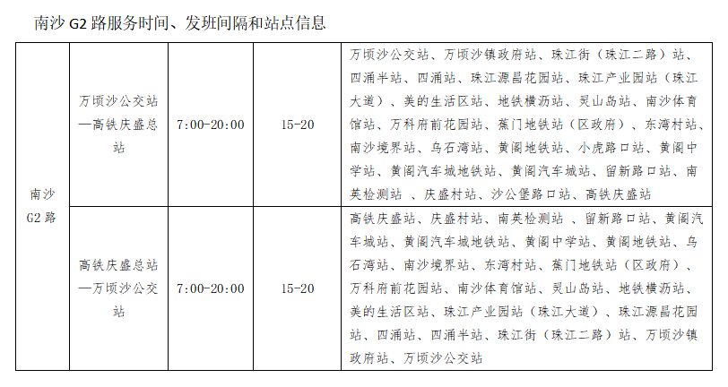南沙G2路(高铁庆盛站—万顷沙公交总站)