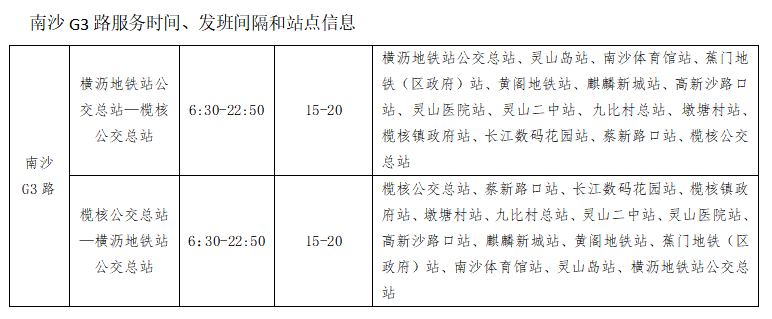 南沙G3路(横沥地铁站公交总站—榄核公交总站)