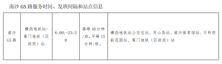 南沙G5路(横沥地铁站公交总站—蕉门地铁(区政府)站)