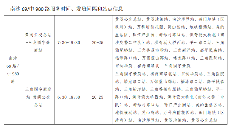 南沙69路/中980路(黄阁公交总站—三角国宇豪庭站)