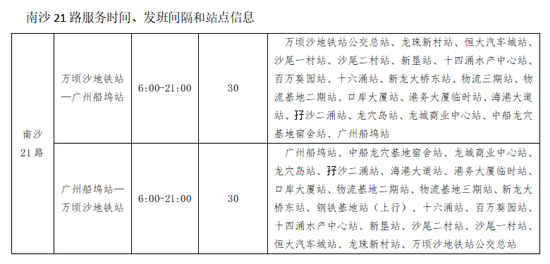 南21路(广州船坞站—万顷沙地铁站公交总站)