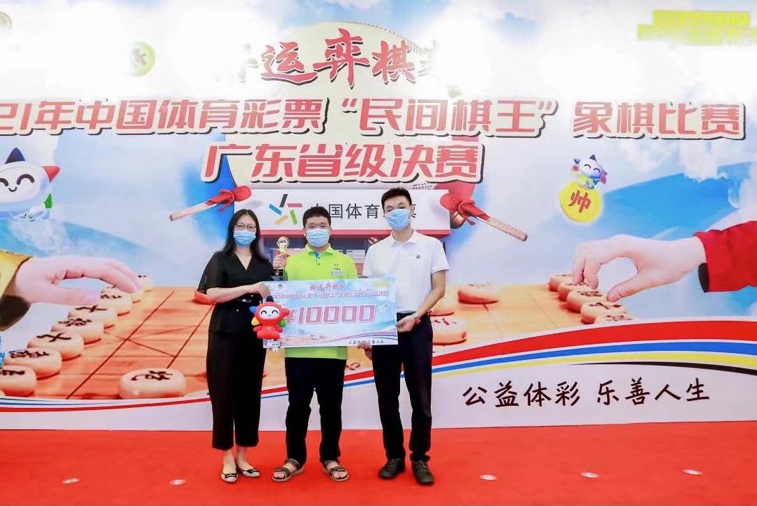 中国体育彩票全国象棋民间棋王电视争霸赛由国家体育总局体育彩票管理中心和中国象棋协会发起,广东赛区比赛由广东省体育彩票中心主办,各市体彩中心承办,今年3月起在全省506家体彩店开展海选,共吸引了2400多人参加,比赛场次超3万多场,参与人数与比赛场次均位列全国第一。为弘扬传统文化,展现公益体彩的良好社会形象,广东各级体彩设置了具有吸引力的奖励,本次总决赛,冠军奖金10000元;亚军6000元;季军3000元;其他参赛棋手每人1000元,这也鼓励了更多喜爱象棋、热衷竞技的群众们参与到这项盛事中来。