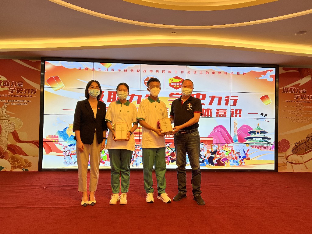 活动现场,海珠区委统战部向广州市第六中学、海珠工艺美术职业学校颁发了“民族团结进步奖学金”,表彰在促进民族团结进步中表现优异的学生,区委宣传部向两个学校赠送了党史学习教育书籍。