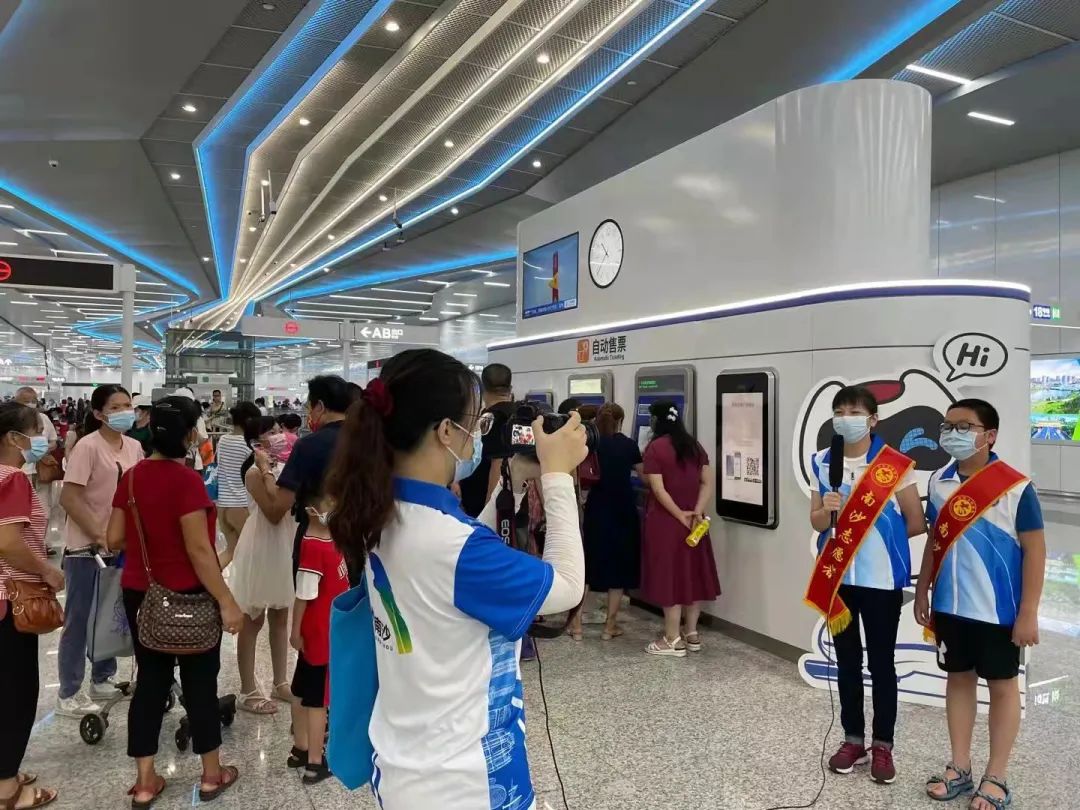 在青年志愿者一对一的带领陪同下,两位小朋友前往全新开通的广州地铁18号线横沥站、南沙天后宫、蒲州炮台等地进行参观。