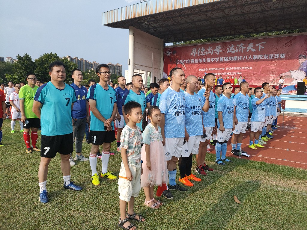 国庆节期间,风和日丽,“厚德尚学·达济天下——2021年清远市华侨中学首届凤凰杯八人制校友足球赛”开启。一群清远侨中的老校友风尘仆仆回到母校的体育场,就此展开一场金秋绿茵约会,向在母校度过的青葱岁月致敬。随着《运动员进行曲》的奏响,精神抖擞的老男孩们身穿运动服列队走进操场。本次赛事由清远市华侨中学和清远市清城区体育总会联合主办,从10月1日开始共赛3天。比赛得到众多清远侨中学子们的响应,绿茵挥汗之余,他们回忆起在学校时的点点滴滴,对母校的教育培养、老师们的悉心关怀表示由衷的感谢。清远市华侨中学相关领导对各位校友重聚母校表示热烈欢迎,并对校友们以足球赛形式回访母校、联谊感情、重温校园时光的方式给予高度评价。在足球赛进行的同时,主办方还在清远侨中运动场边举办了《清远市华侨中学历史沿革文化展》,展示了侨中的校史图片、荣誉、任教老师、各届校友毕业照、校运会照片、校运会成绩、历届毕业班座位表、校园文化活动等,让老校友们重温那段青春与拼搏的流金岁月。