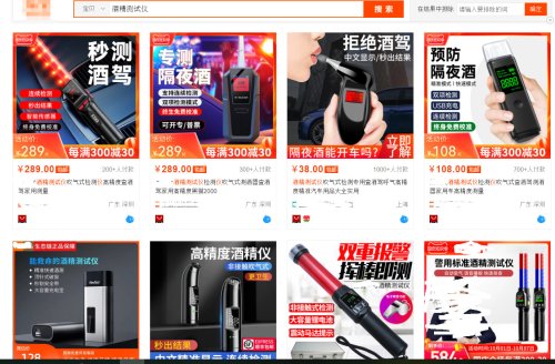 在另一个网购平台,记者同样输入“酒精测试仪”进行搜索,发现也有4000多件类似商品,有的商家还打出“交警同款”“警用标准”等字眼。其中一款写着“交警同款”的“酒精测试仪”,标价648元,累计商品评价500+。另一款标价118元的商品,累计评价达到5000+。